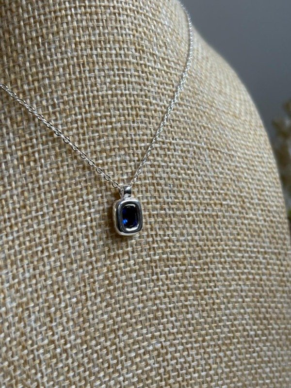 Conjunto de plata 925, con dije pasante en cristal lápiz lazu y extensor regulable.